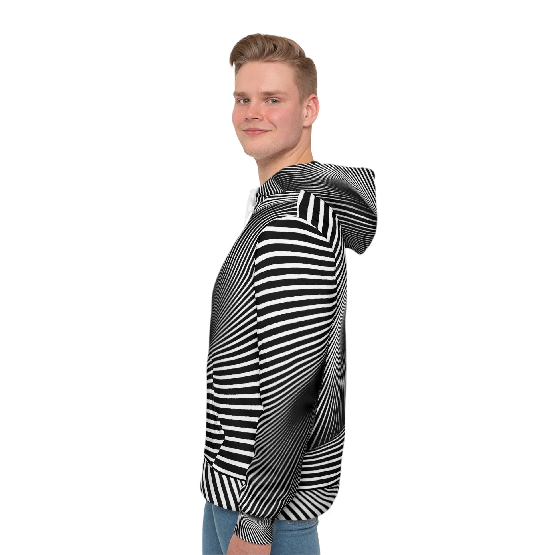 Step into the mind-bending world of style with this Optical Illusion Hoodie—where your eyes won't know what hit them. Featuring an eye-catching black and white pattern that wraps around the entire piece, this isn't your average hoodie. Slip into the buttery-soft polyester fabric, toss your stuff in the roomy kangaroo pocket, and adjust the drawstrings for the perfect fit. With its relaxed, no-fuss vibe, you'll be ready to turn heads whether you're chilling at home or hanging with friends. Who knew comfort could be this visually captivating?