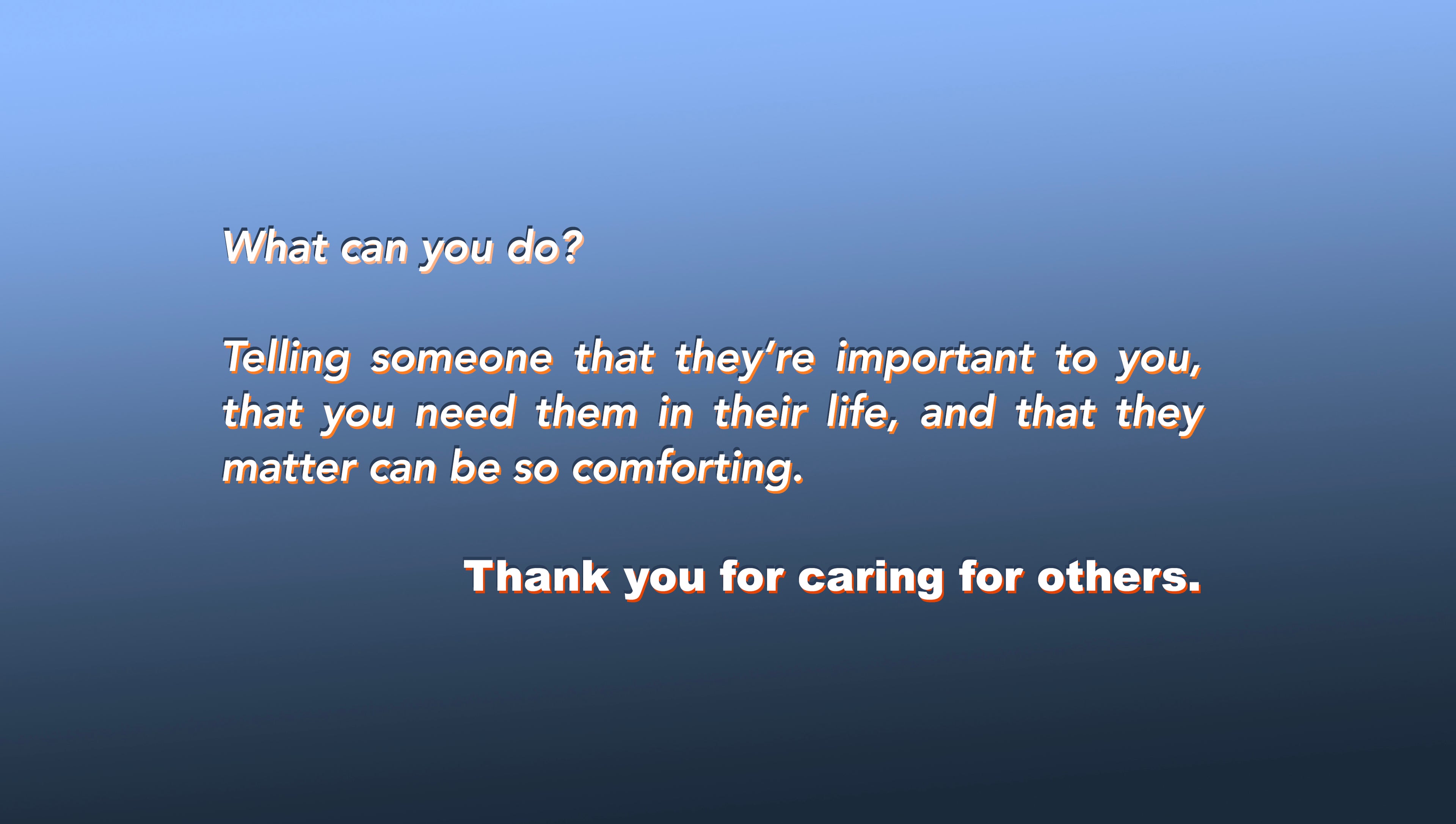 I know how it feels ok? I have lost someone to suicide, and I wish every day that I had known just something, anything, that I could have said or done to prevent it.