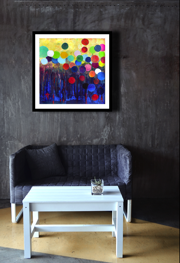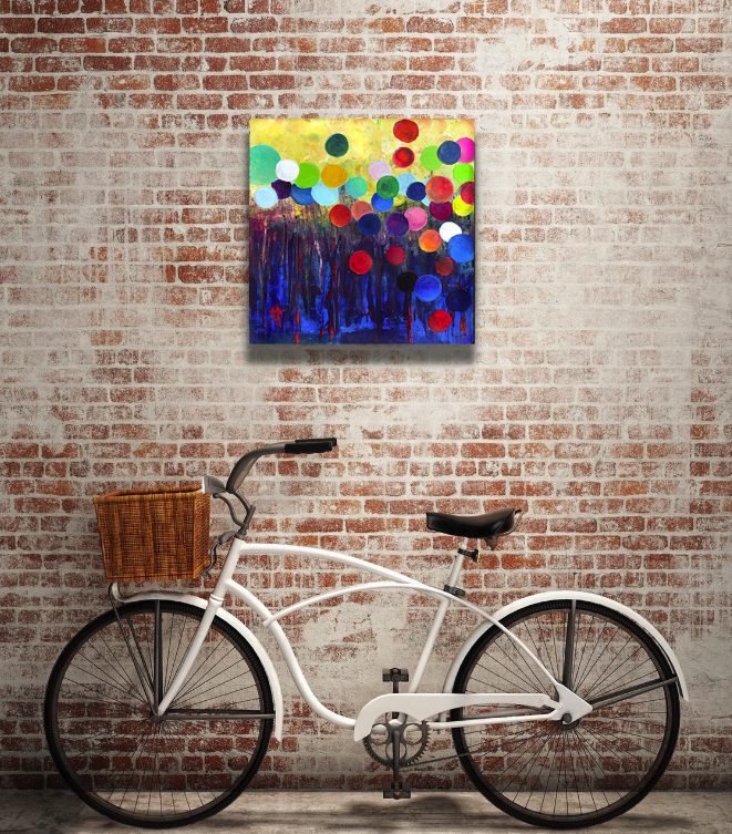 This fun and colorful image will cheer any space with it's balloon-like circles and rich design.