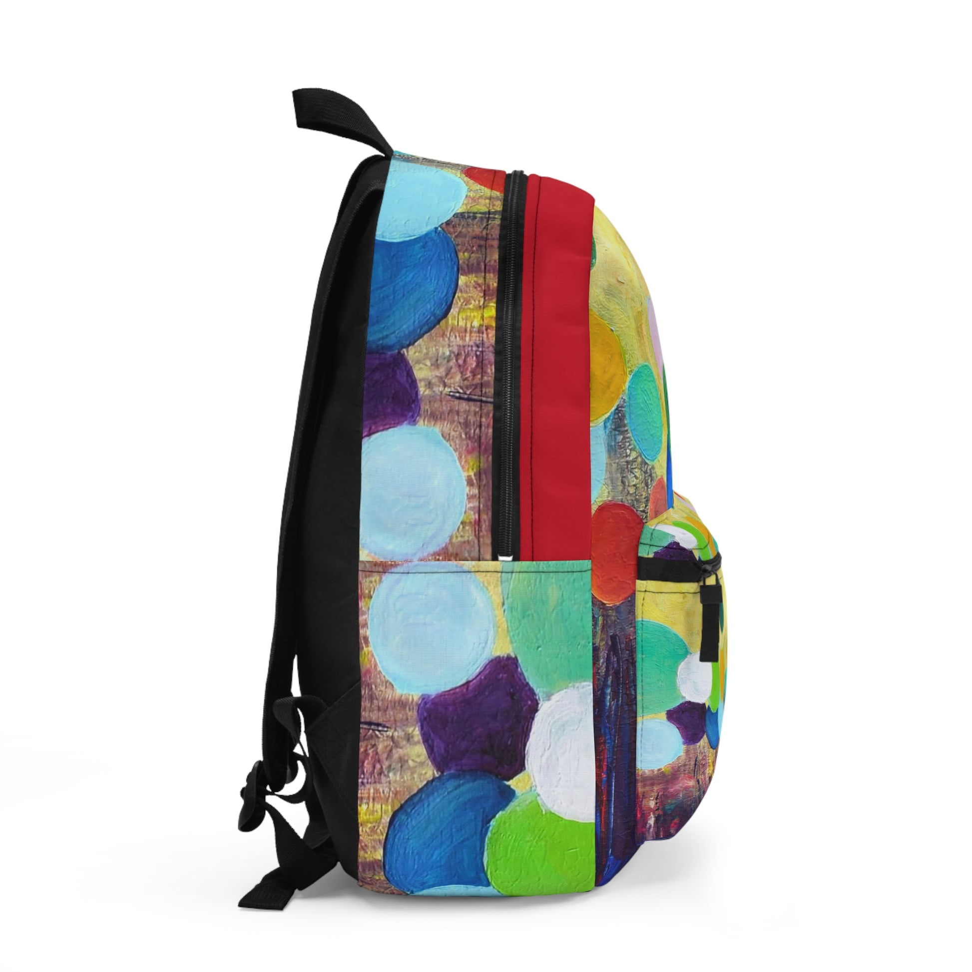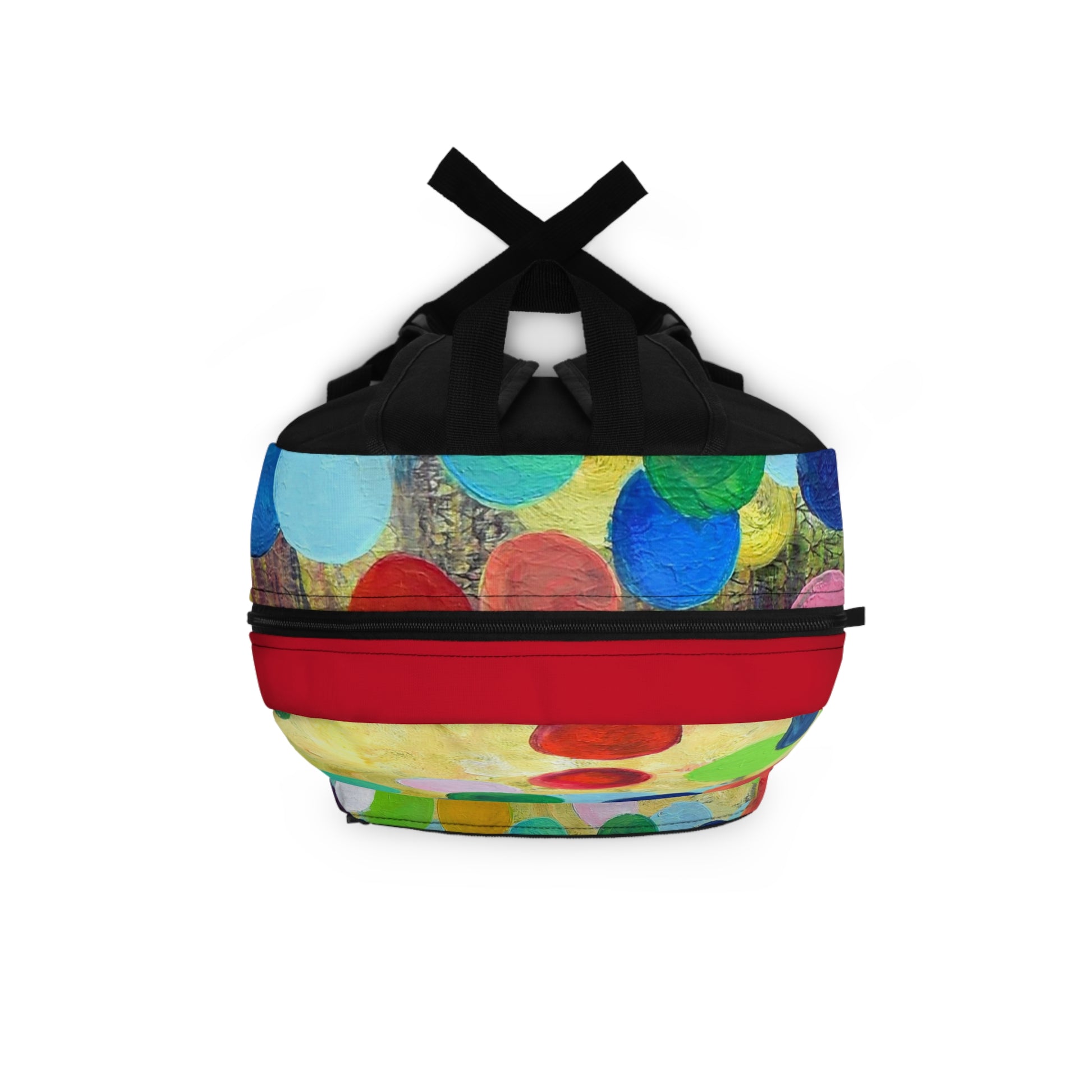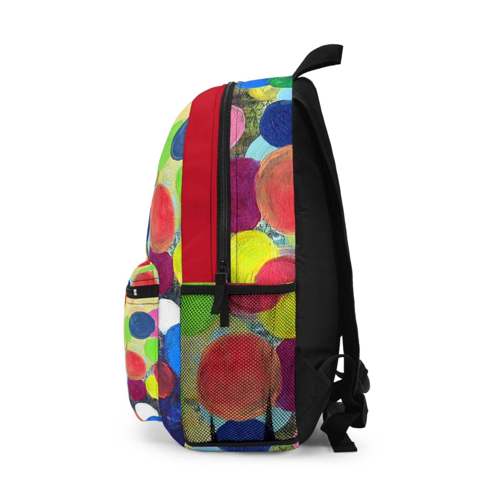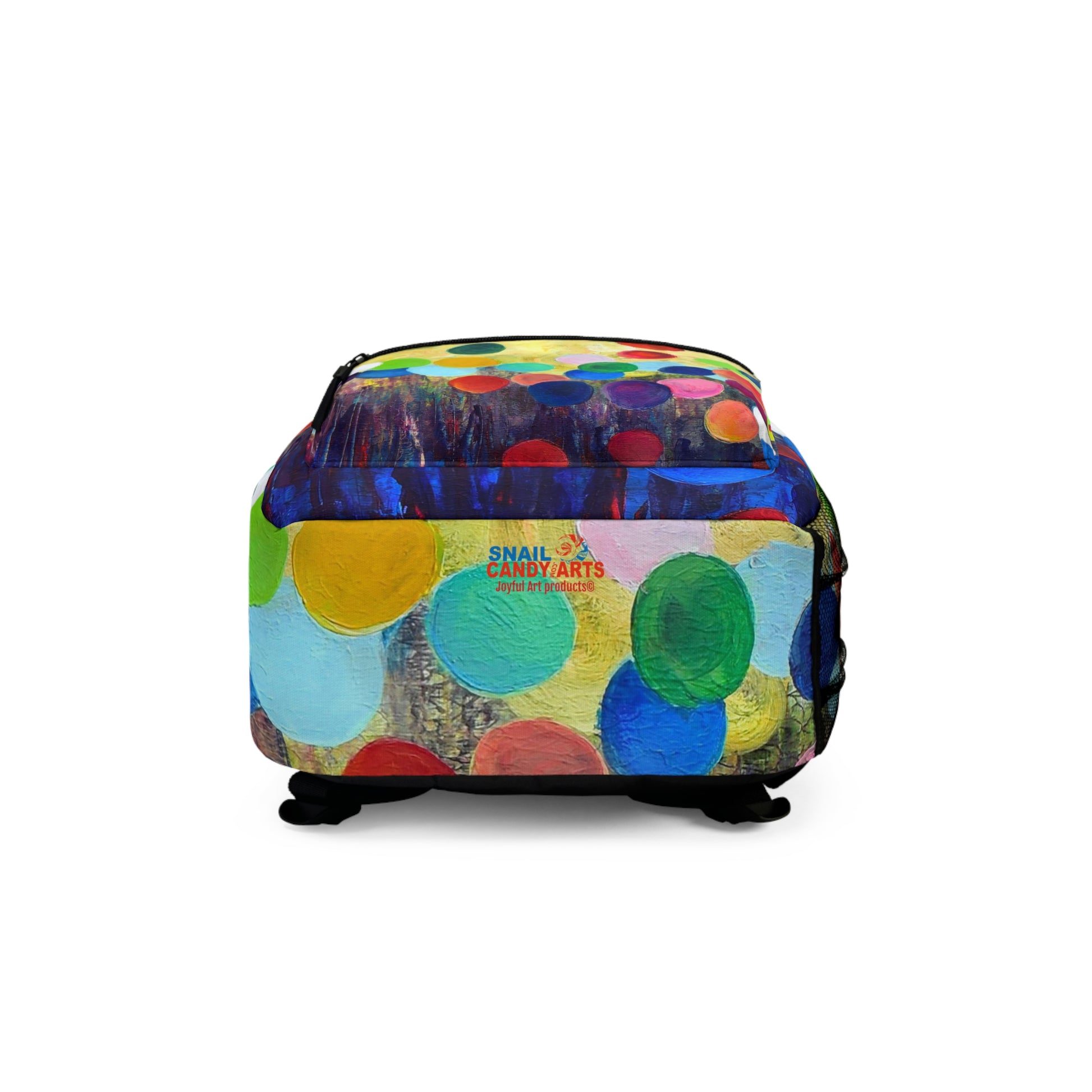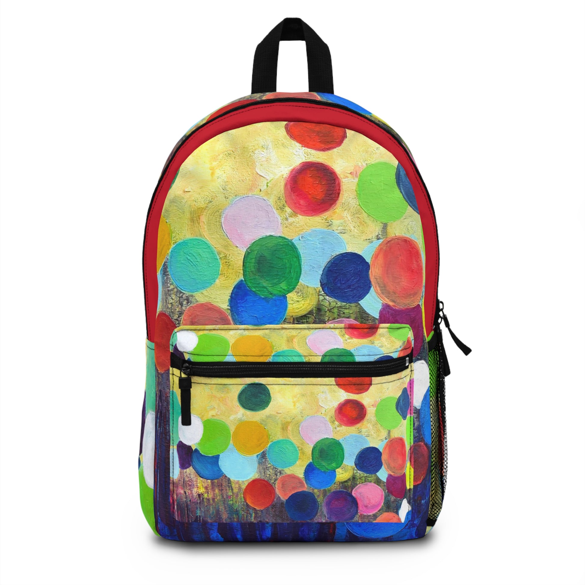 Backpack, multi-colored dots, polkadots, fun & colorful artwork by Tif Choate