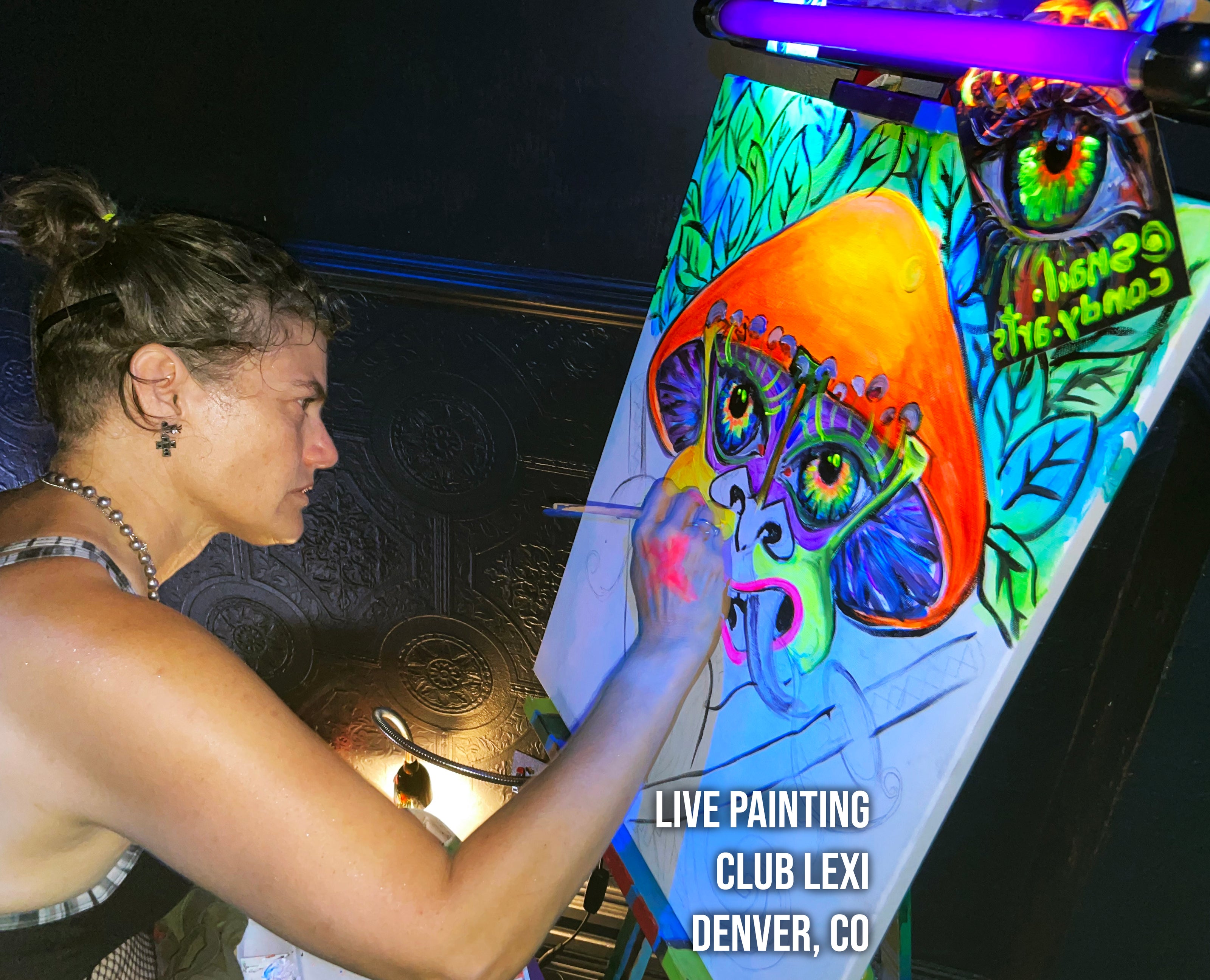 Tif Choate, Snail Candy artist, showcases her live painting skills at Club Lexi, beneath the Crazy Horse Restaurant and Bar on Colfax, 1315 Marion St, Denver, CO