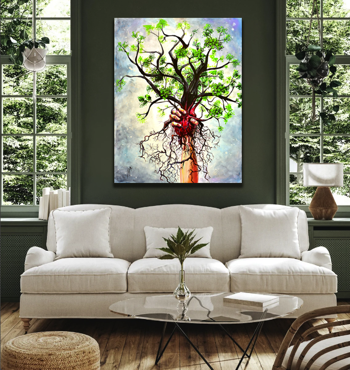 Shipping is available within the USA. Oversized paintings are rolled and shipped in a tube, while smaller paintings come mounted on a wooden frame and packaged in secure boxes.