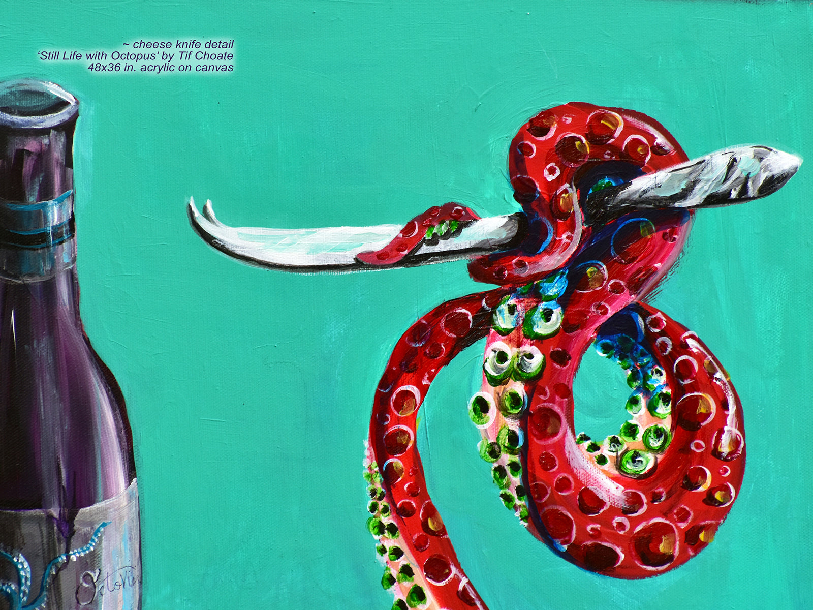 "Still Life with Octopus" was crafted by Tif Choate between 2018-2022, manifesting in five revisions before its completion to the artist's satisfaction.