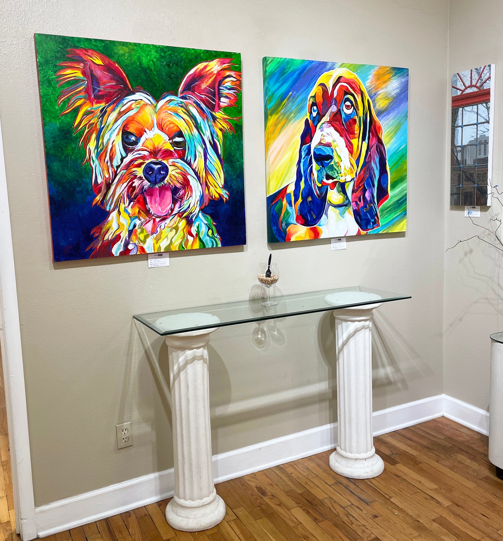 This spunky Yorkshire Terrier Canine is a member of the series, 'Truth is a Good Dog' 2018, a collection of huge and colorful dog portraits. He was inspired from a friend's family dog that had a huge personality in a tiny little body! In Tif's signature style, this animal portrait is rich with colorful hues and a dynamic background.