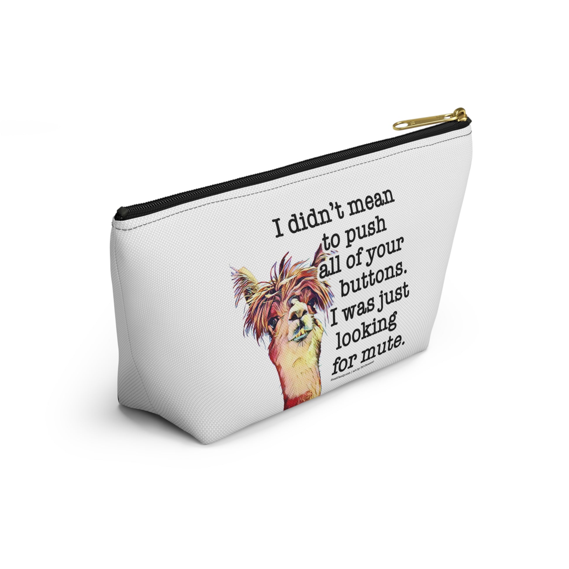 Digital design by artist, Tif Choate©. This cute artwork of a silly Llama says, " I didn't mean to push all of your buttons. I was just looking for mute."