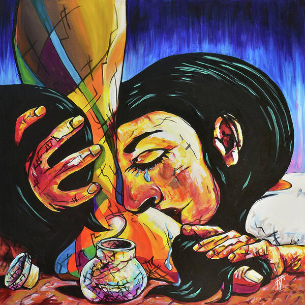 The title, 'The Other Mary', refers to Mary Magdelene in John 12: 3: "Mary then took a an alibaster jar of very expensive perfume of pure nard, and anointed the feet of Jesus and wiped His feet with her hair; and the house was filled with the fragrance of the perfume." Mary’s anointing points to Christ’s identity as Messiah-King, but it also points to His humble position as Servant-King. She did this to show her devotion, gratitude, and love, and to worship Jesus, saying that she believed he was the Messiah, the Son of God. Jesus saw the anointing as a preparation for his burial. She knew that she was at the feet of God and it was an act of humility and devotion.